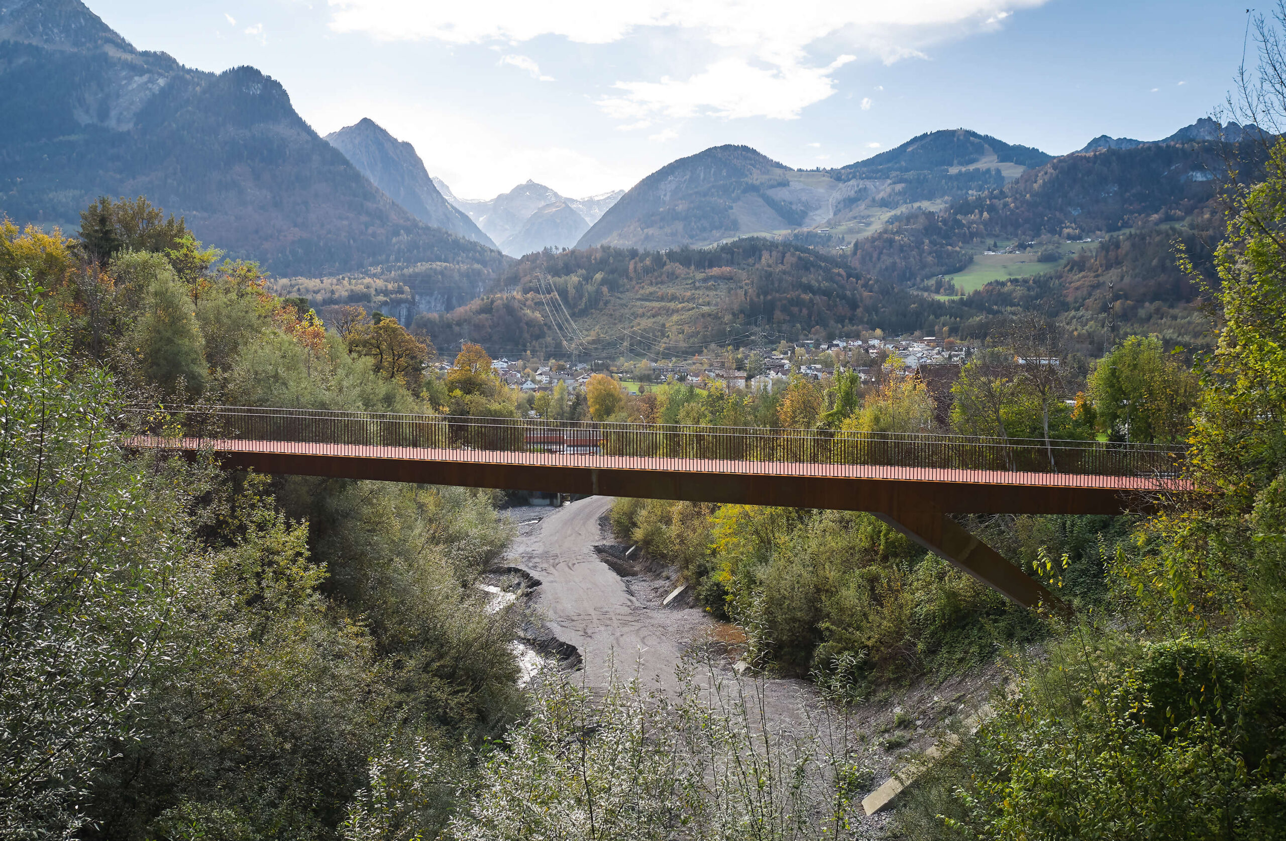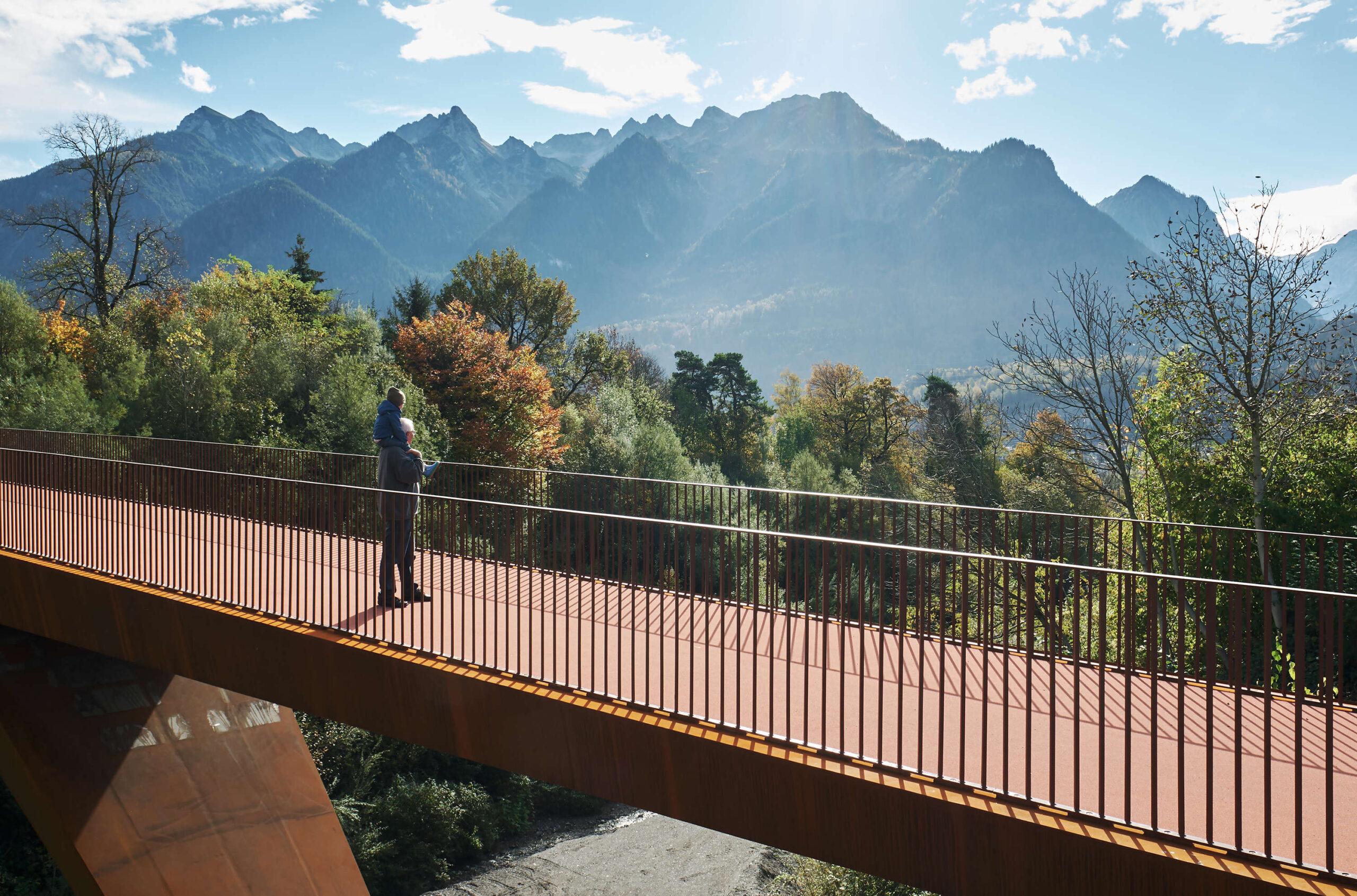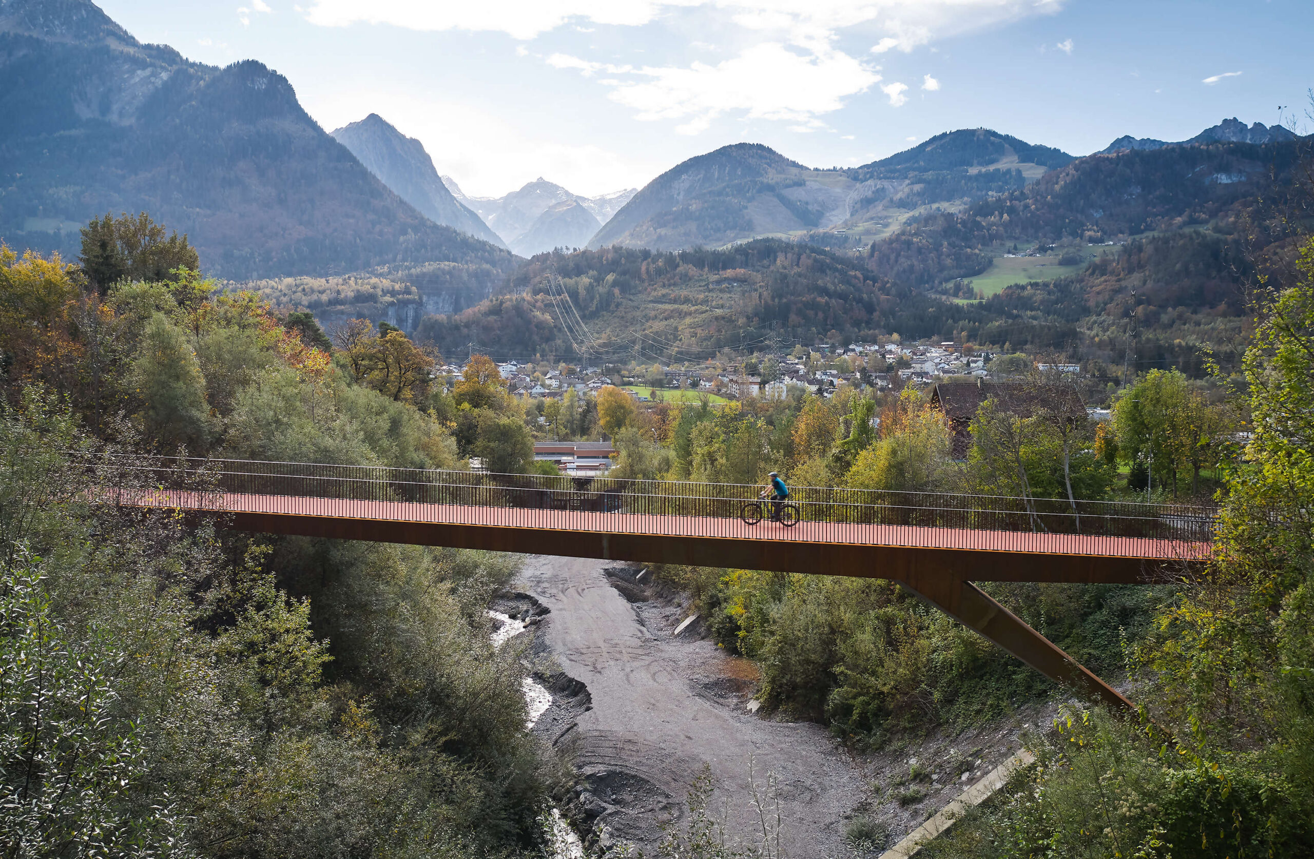 Die moderne Fußgänger- und Radfahrerbrücke ist Teil des Landesradwegenetzes und verbessert insgesamt das Bludenzer Verkehrsnetz.