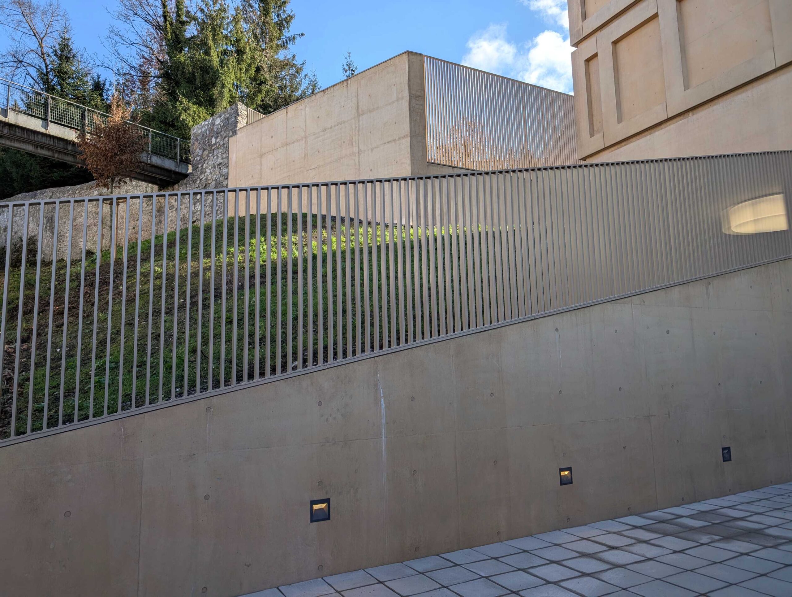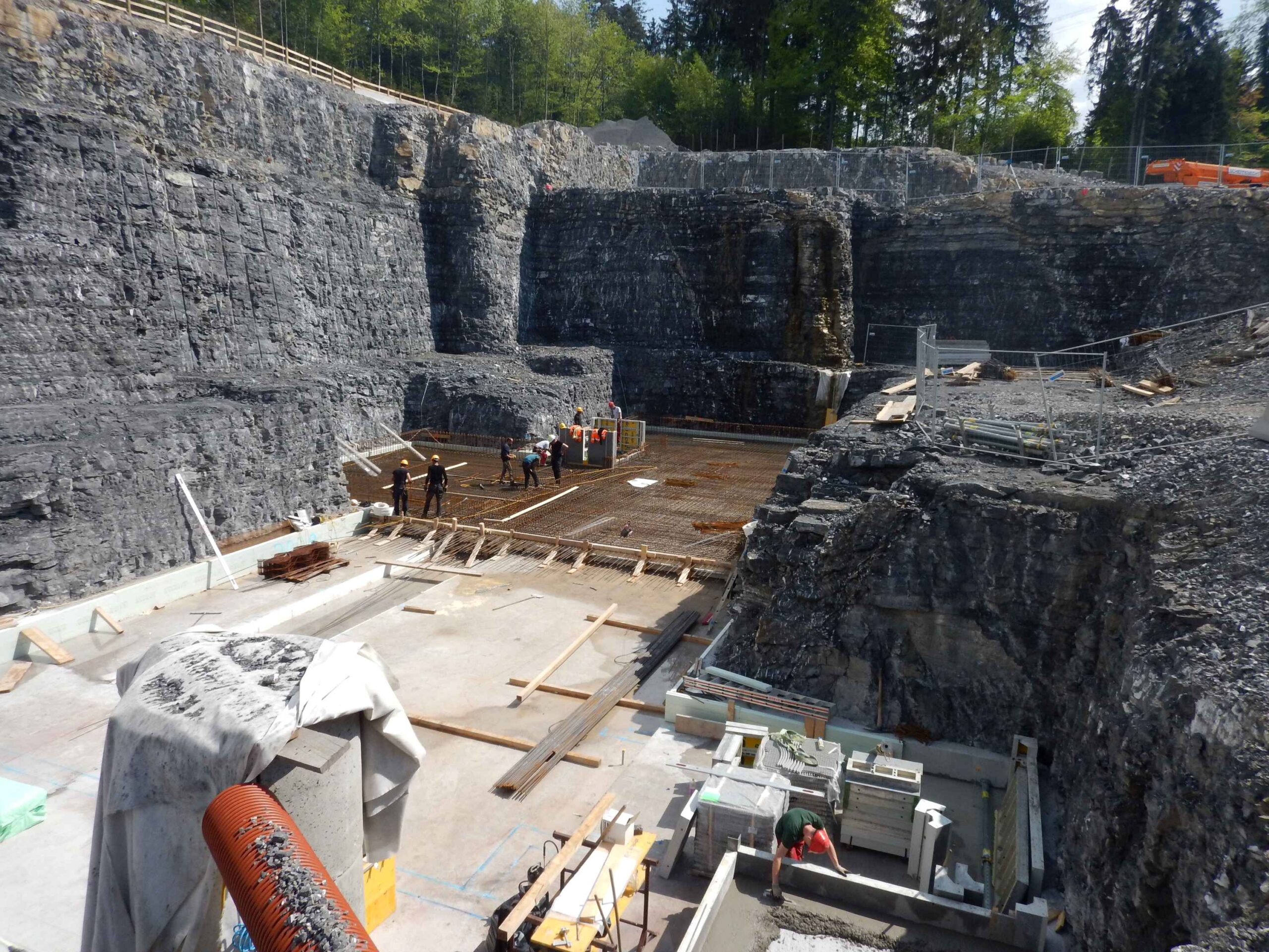 Das Tragwerk wurde in Stahlbetonbauweise errichtet. Es ist auf gut tragfähigen Fels gegründet. Das neue Gebäude wurde stufenweise in den Fels eingebunden. Bergwässer werden bergseits gesammelt und talseitig wieder weitgehend versickert.