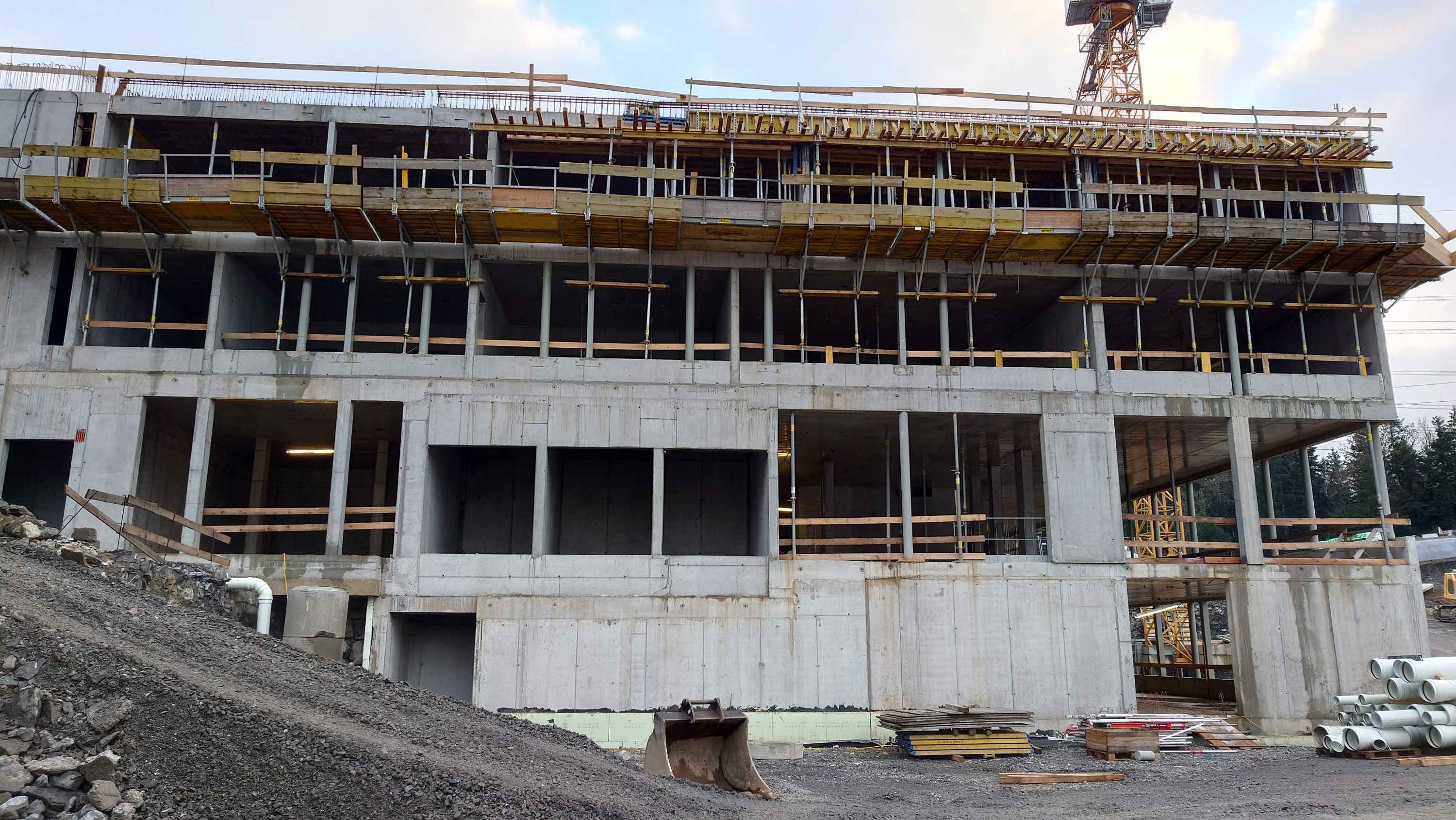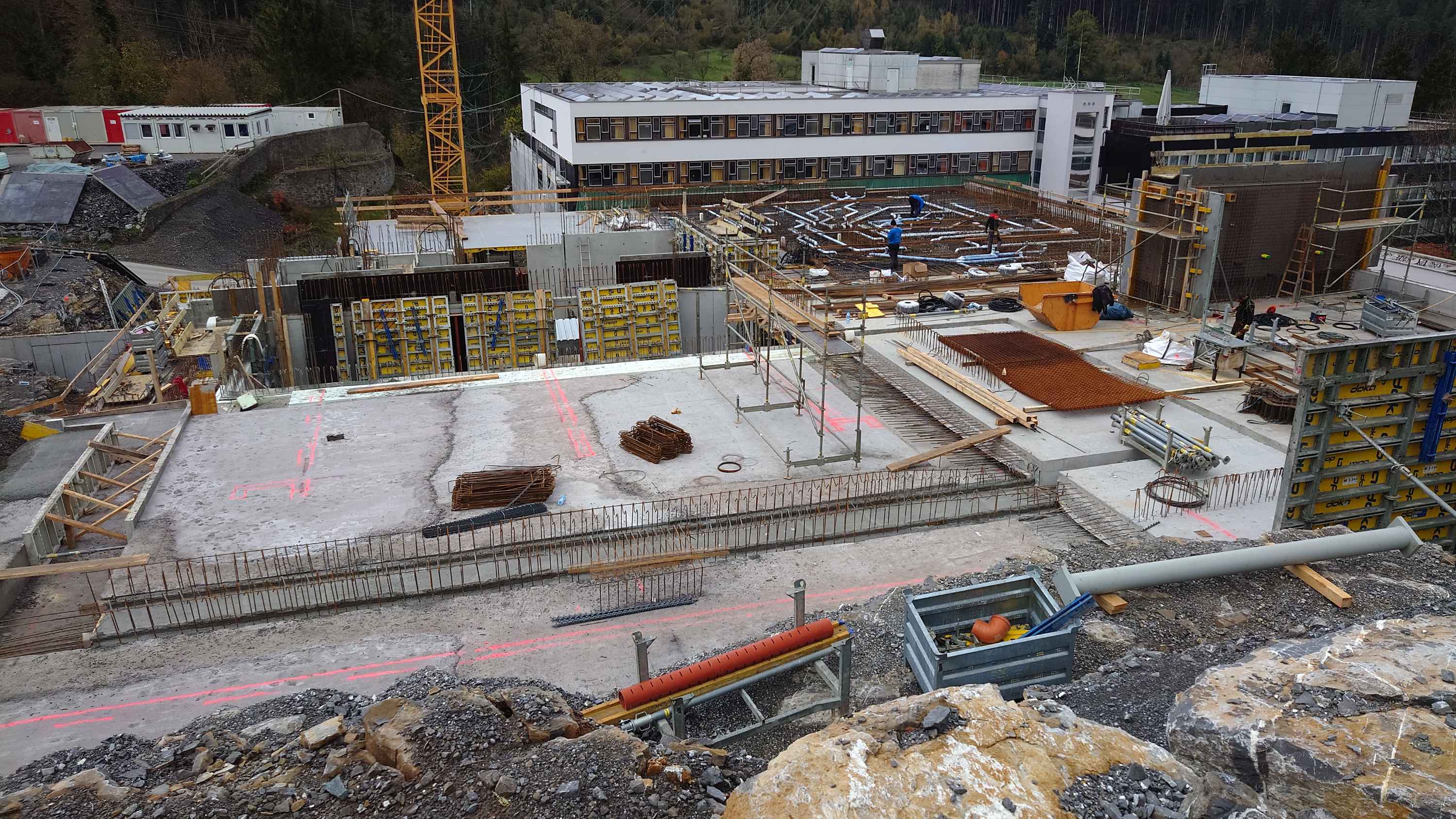 Das Tragwerk wurde in Stahlbetonbauweise errichtet. Es ist auf gut tragfähigen Fels gegründet. Das neue Gebäude wurde stufenweise in den Fels eingebunden. Bergwässer werden bergseits gesammelt und talseitig wieder weitgehend versickert.