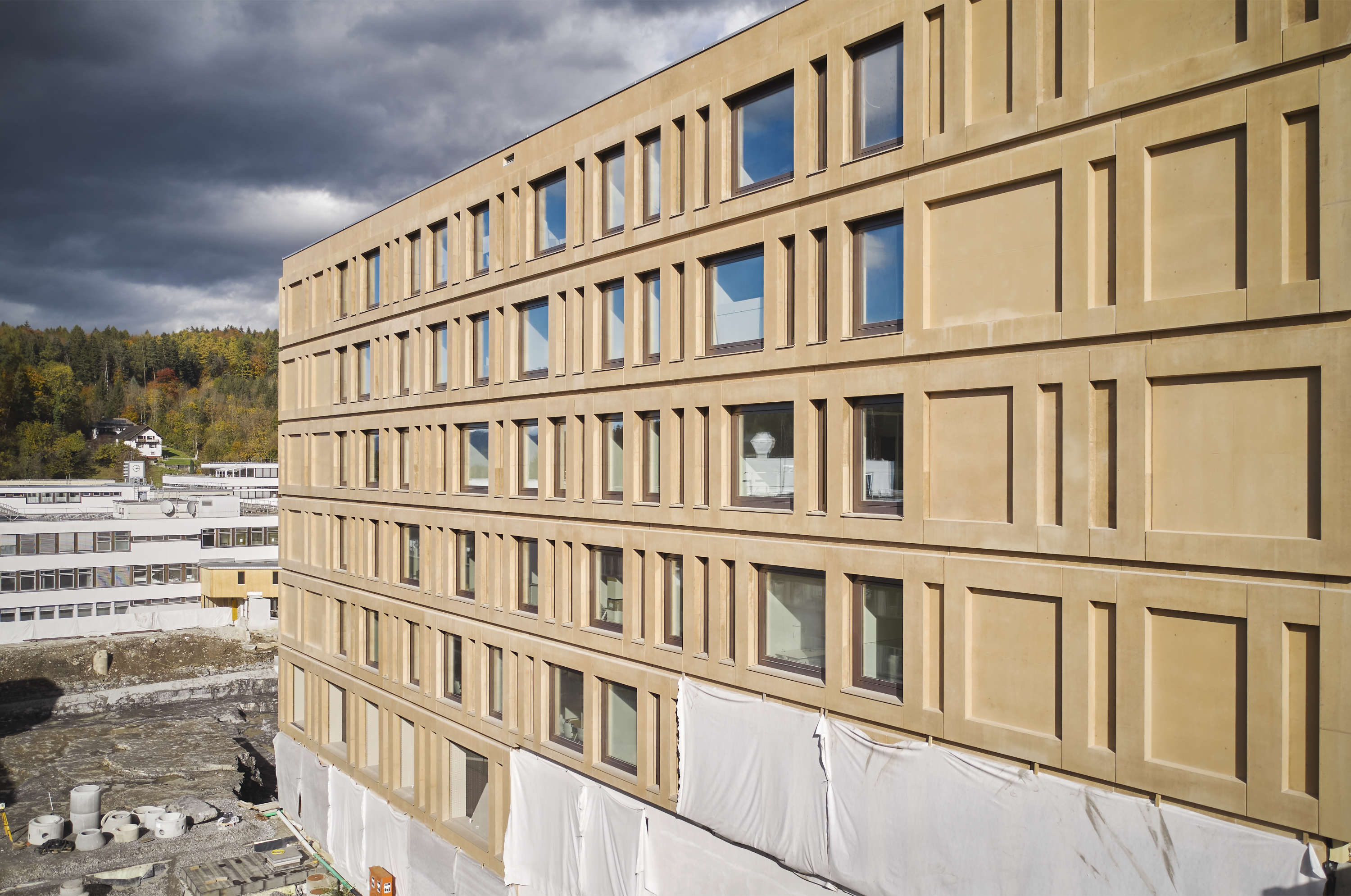 Der neue Gebäudekomplex für das Landeskrankenhaus Rankweil zählt insgesamt sieben oberirdische sowie zwei unterirdische Stockwerke und ist hinter dem Neurologie-Gebäude situiert. Der Neubau des Gebäudes schafft Raum für neue Behandlungskonzepte.