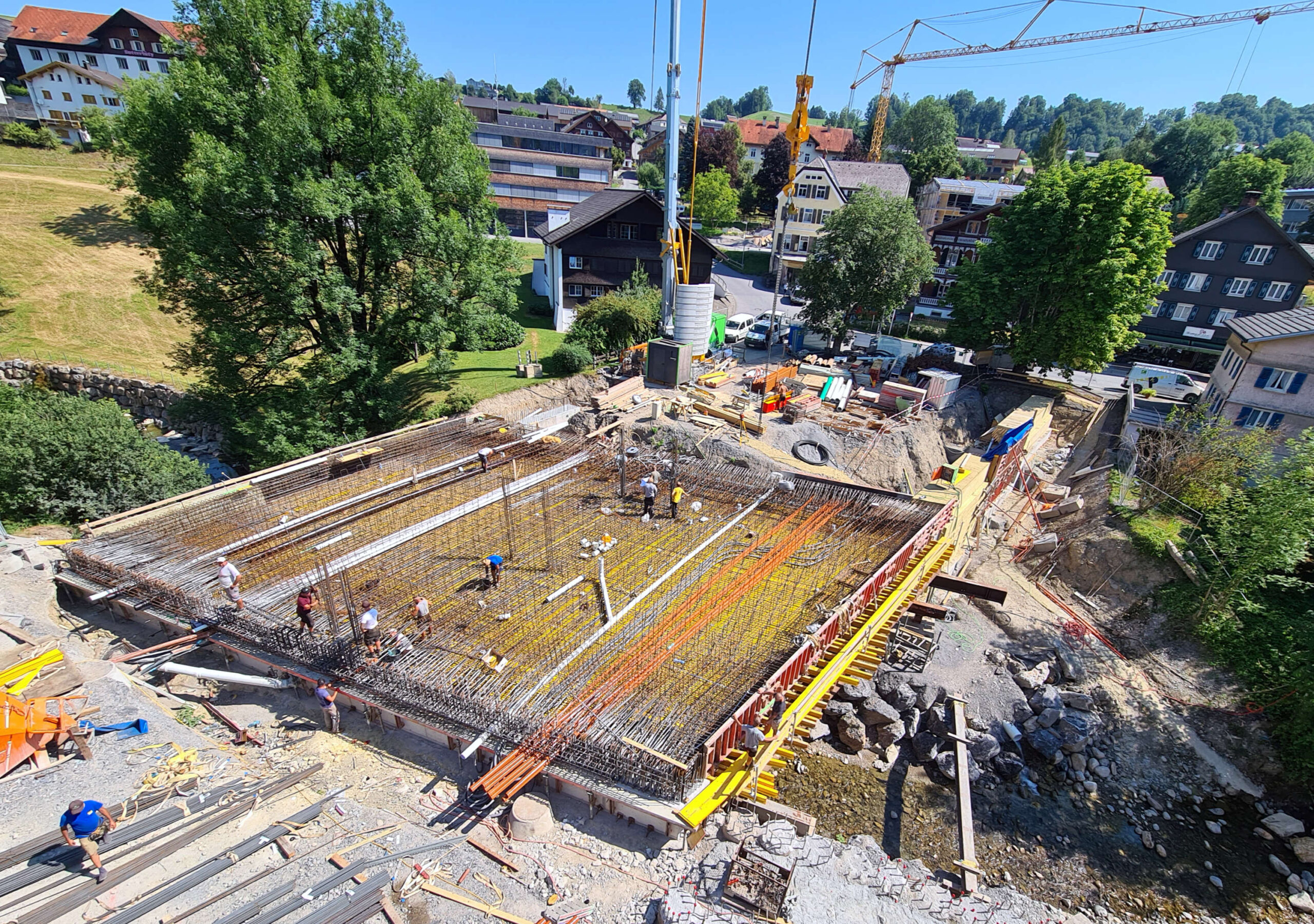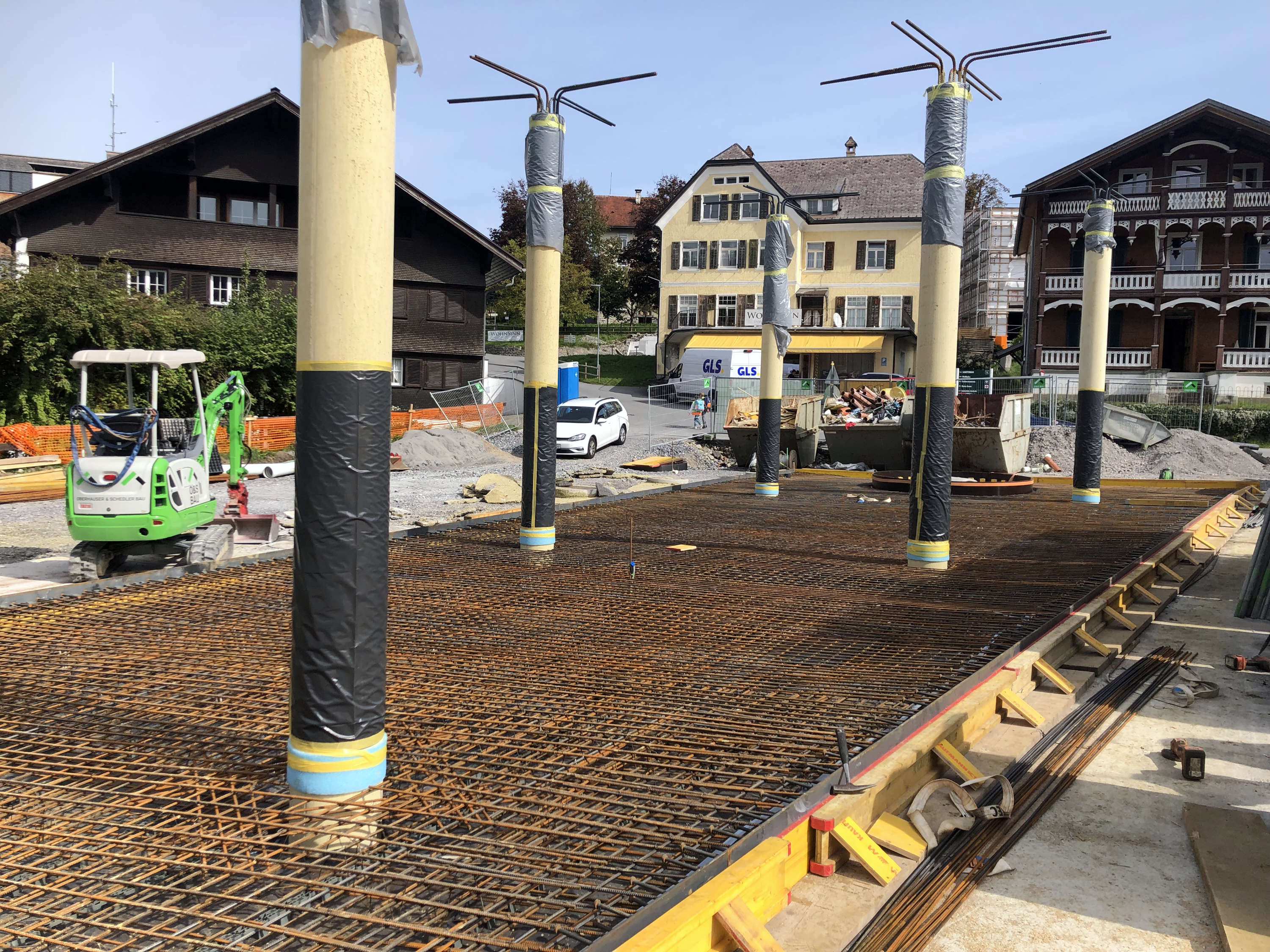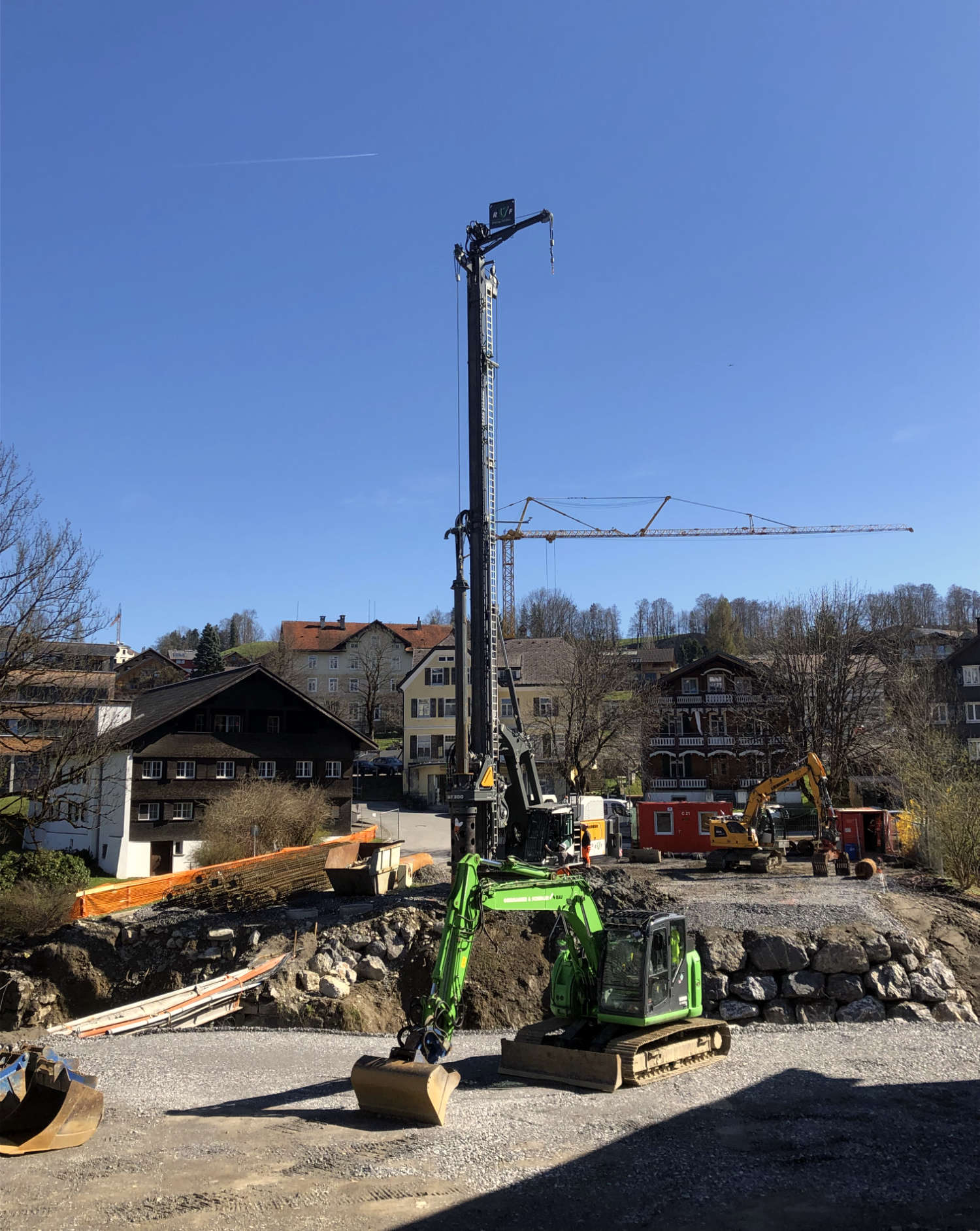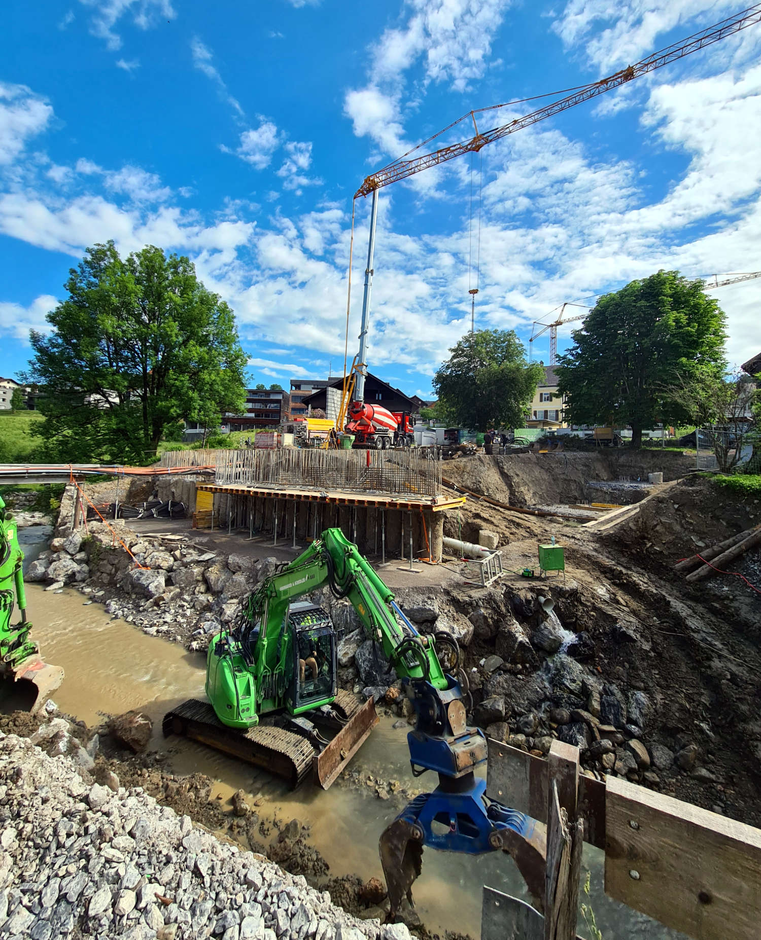 Auf Grund der anstehenden Seetone (eine setzungsempfindliche Bodenbeschaffenheit) musste das gesamte Bauwerk tiefenfundiert werden. Auf der orographisch linken Seite musste eine Lücke in der Ufermauer geschlossen werden.